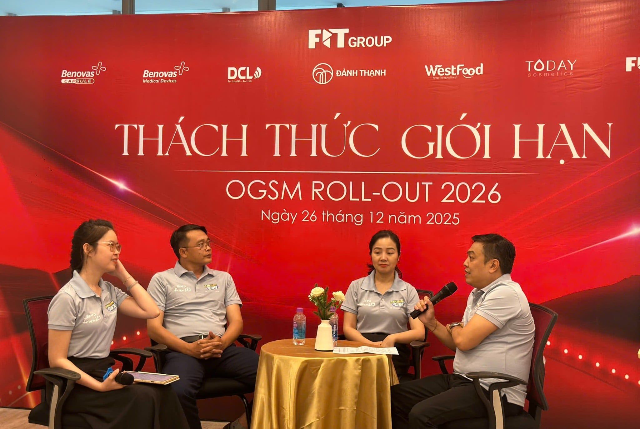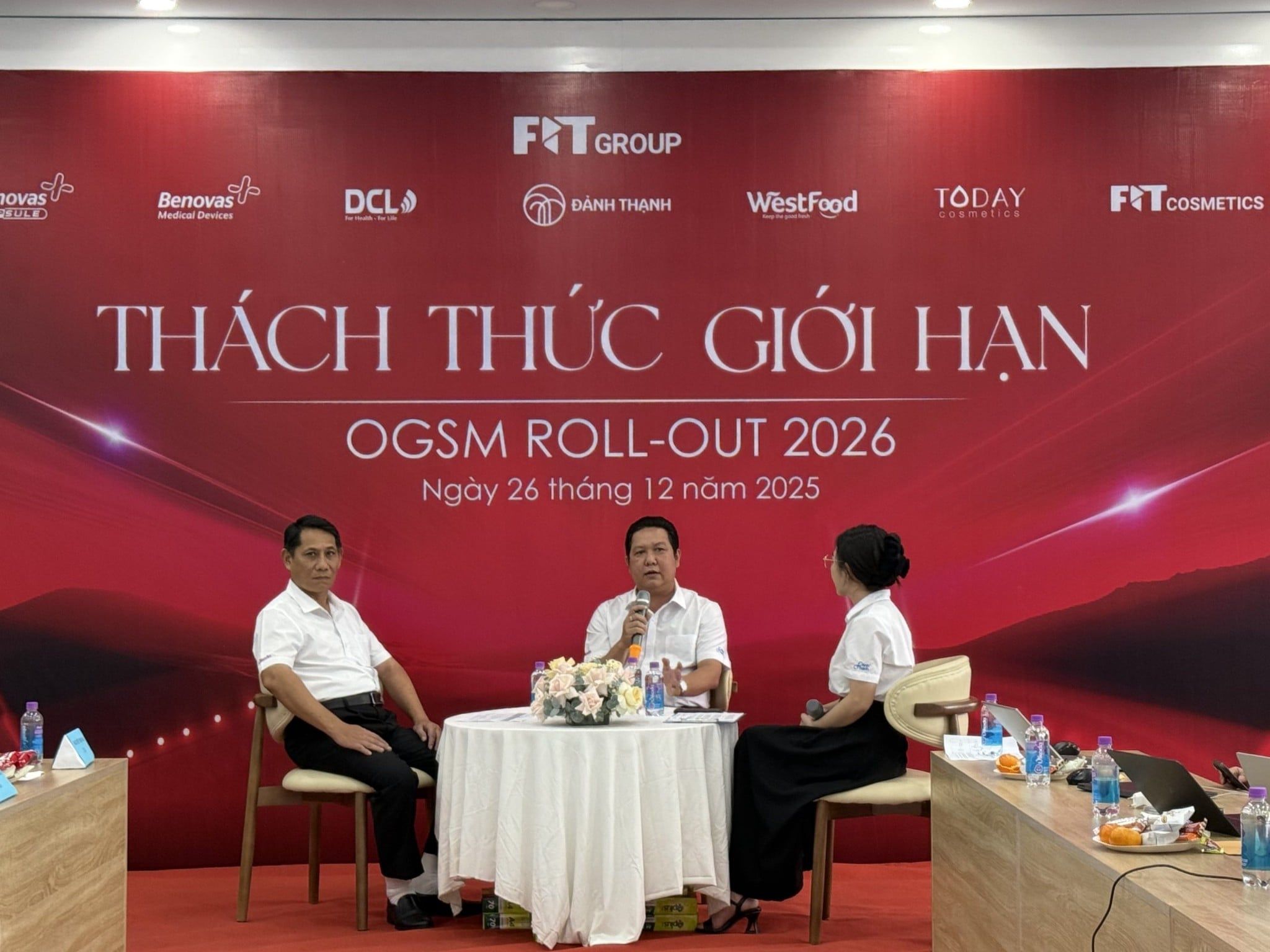 Ngày 26/12/2025, F.I.T Group đã tổ chức thành công Hội nghị OGSM Roll out 2026 toàn Tập đoàn với chủ đề “Thách thức giới hạn”. Đây là sự kiện quan trọng nằm trong chuỗi sự kiện diễn ra hàng năm tại Tập đoàn và các Công ty thành viên (CTTV).